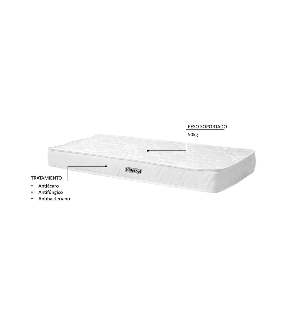 El colchón Kidscool compuesto de espuma y suaves tejidos, brindará seguridad y confort al bebé durante su descanso.
