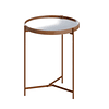 La mesa lateral es un mueble auxiliar que como su nombre lo indica, es una mesa que ofrece un servicio de apoyo, el cual depende de la ubicación de la mesa. La mesa lateral proporcionara la altura perfecta para destacar adornos, lámparas u otras cosas que nos interesa exhibir en nuestra sala de estar, living o dormitorio. Puede ser una pieza decorativa, un elemento de apoyo para ubicar algún objeto o proporcionar un espacio extra de almacenamiento. La mesa lateral es siempre una eficiente pieza del mobiliario que aporta siempre a la decoración. La mesa lateral Aqua 046 de Be Design es un complemento perfecto para brindar un toque especial y acogedor en cualquier rincón del hogar. Con un diseño Industrial y detalles contemporáneos, esta mesa lateral redonda combina patas de acero color cobre, cubierta en MDF con espejo y borde en cuero sintético. Un mueble perfecto que destacara en tus ambientes.
