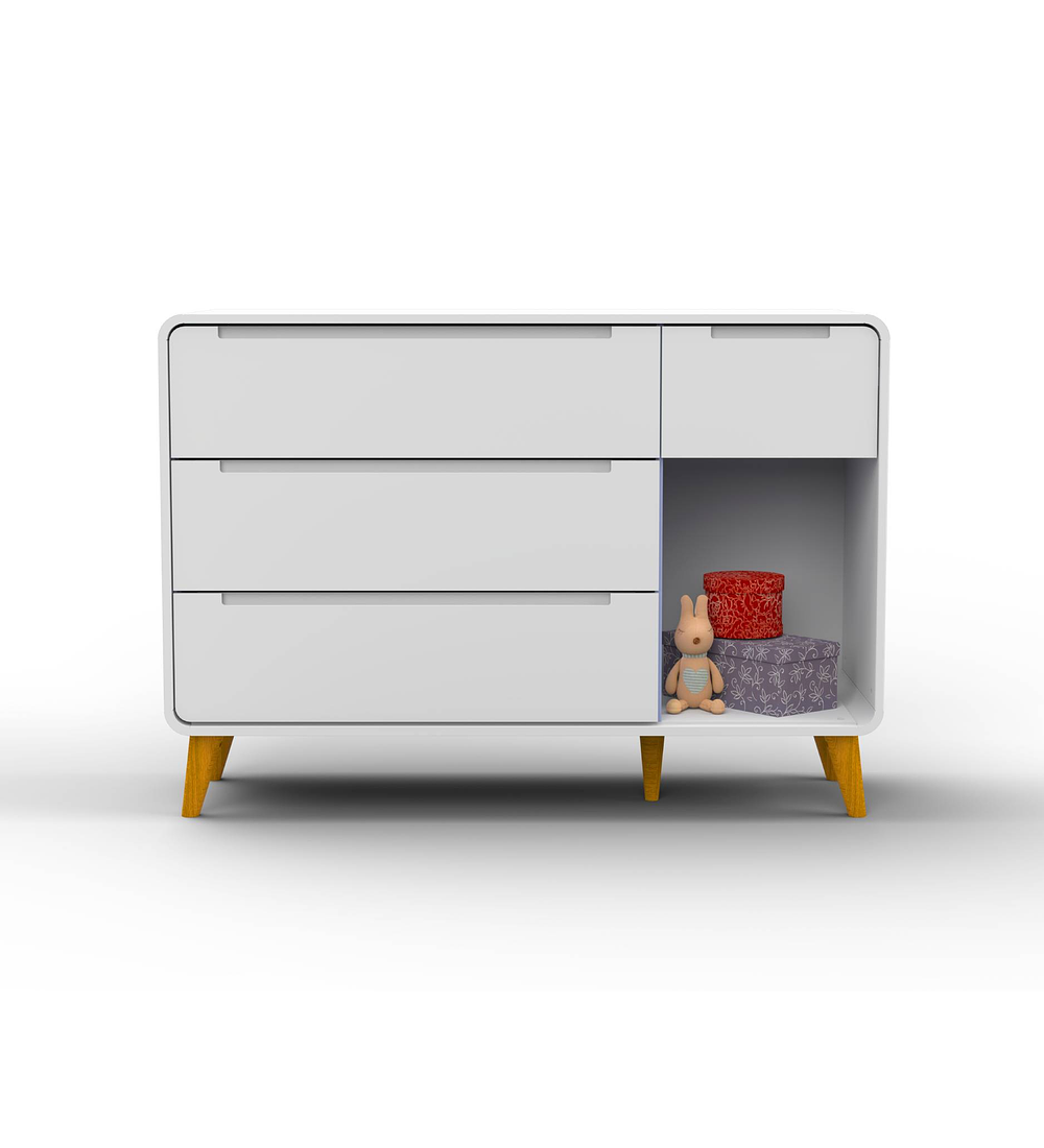 La cómoda es un elemento imprescindible en el dormitorio. Es un tipo de mueble atemporal que no pasa de moda. Una cómoda es un elemento tan decorativo como práctico que debe adaptarse al estilo general de la habitación. Antes de elegir una, debemos tener en claro el espacio requerido para el producto elegido y el espacio disponible. Hay que situarla en un lugar de fácil acceso para abrir y cerrar, sin obstaculizar el uso de otros muebles o el libre paso. La cómoda es un mueble fundamental para lograr que la habitación sea práctica, organizada y funcional. La Cómoda Agatha es una excelente opción para renovar los espacios con estilo y eficiencia. Cuenta con un diseño Vintage en MDP con tres cajones para guardar la ropa y artículos personales, además de un espacio lateral independiente compuesto por 2 niveles: uno con puerta y gran espacio interior y otro con un cajón. Todos los cajones van con rieles metálicos telescópicos y tiradores calados en los cajones. Su amplia cubierta de 120 cm de ancho por 45 cm de profundidad es ideal para instalar un mudador. Sin duda será muy fácil complementar con cualquier tipo de decoración. Soporta un televisor de hasta 50. Muy atractiva y versátil, la cómoda Agatha dará el toque perfecto para brindar elegancia y modernidad con eficiencia a tus espacios. Incluye: