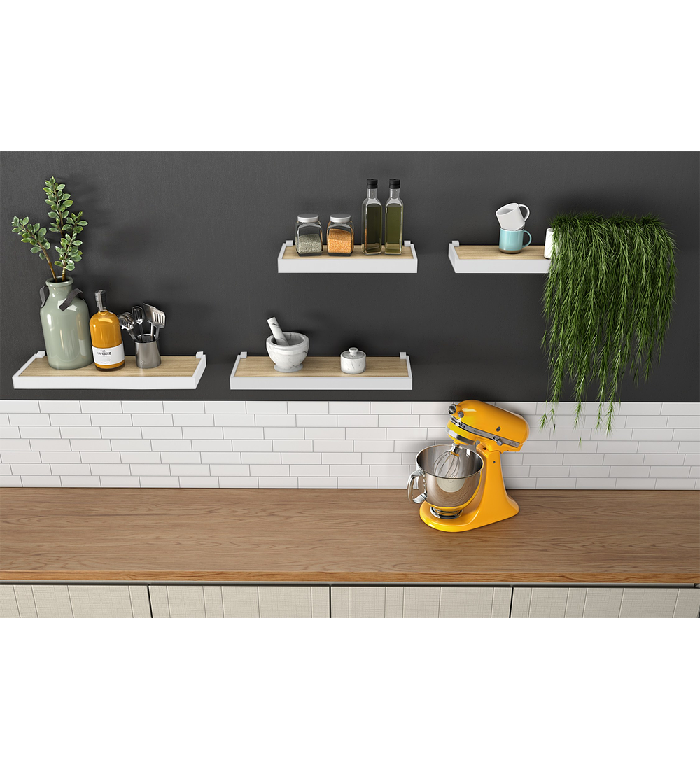 Las repisas son complementos sencillos pero muy eficientes para organizar, decorar y renovar el hogar por su aporte estético y funcional. Permiten organizar, decorar y tener a la vista objetos o libros maximizando el espacio. Antes de elegir una repisa debes tener en claro el uso requerido y las medidas, luego revisar con el espacio disponible. Ya que el mueble que elijas debe adaptarse al espacio y la decoración del lugar aportando estéticamente. La repisa Duetto de Be Design diseñada en MDP con borde de 4 cm en MDF, será una excelente opción, ideal para lucir objetos decorativos o de uso diario. Un complemento minimalista, innovador y moderno con estilo flotante. Ideal para decorar y organizar distintos tipos de ambientes y lugares del hogar. Producto recomendado solo para uso doméstico con soporte plástico.