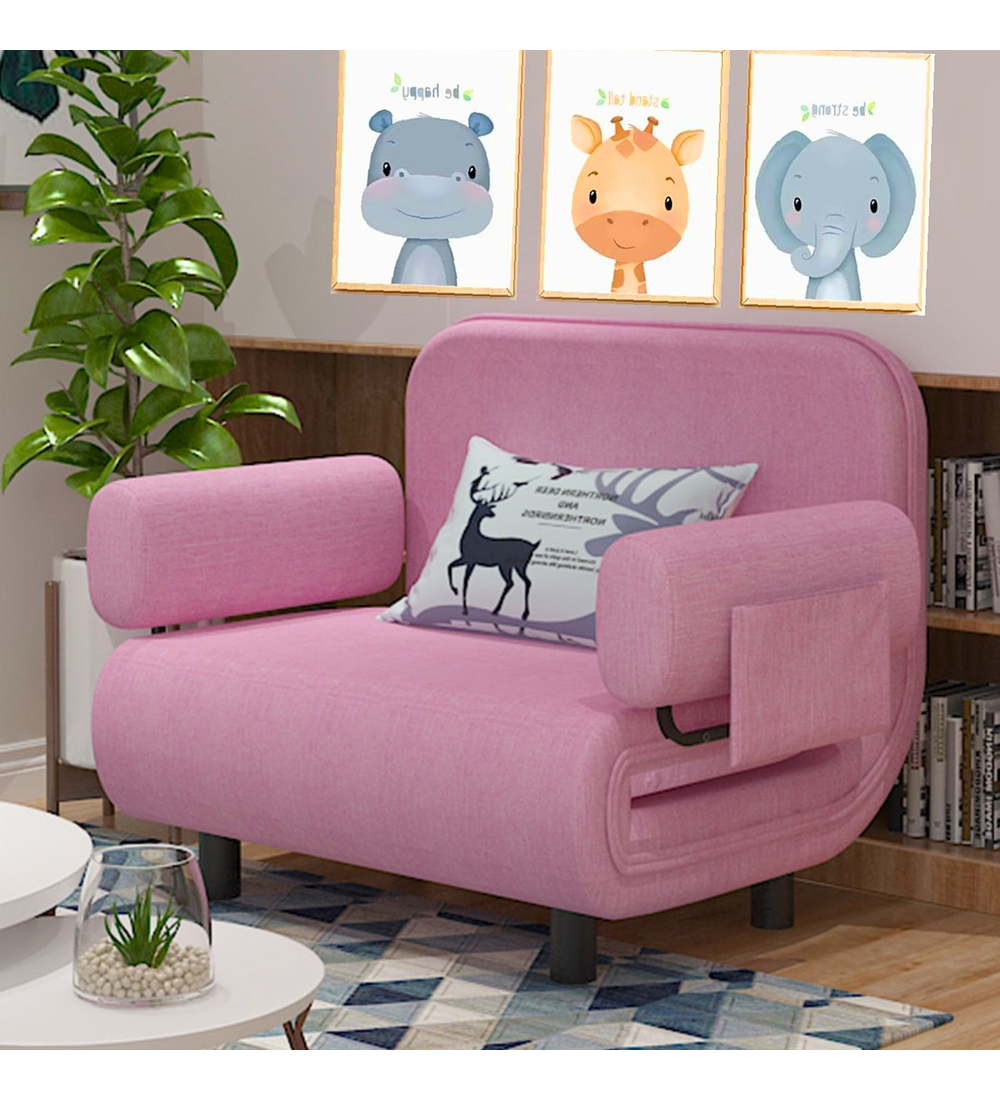 Para incentivar a los pequeños en el juego de roles, Kidscool presenta un práctico y suave Sofá que cumplirá una doble función de mini cama. Diseñado con relleno de espuma de alta densidad para hacerlo suave y resistente, con tapiz en tela poliéster lavable, respaldo con ajuste de altura para mayor comodidad y 2 patas y 2 ruedas con freno. Sin duda un mueble muy versátil y cómodo que fácilmente se adaptara a las necesidades del hogar como una mini cama o un bello sofá que estimulara conductas como descansar, leer y hasta soñar imaginado situaciones. Ya que su propio sofá genera en los niños un espacio ideal para desarrollar sus sentidos y percepción corporal aportando la sensación de bienestar y relajación. Se recomienda proporcionar cuentos y libros infantiles para estimular al pequeño y acostumbrarlo a disfrutar de estar sentado para concentrarse y entretenerse de una forma distinta. Además que será una bella pieza decorativa dentro de la habitación infantil que encantara a todos por su bello diseño y su sistema de plegado de gran utilidad.